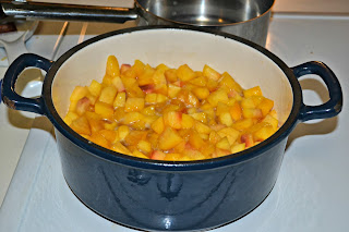 Peaches were on sale this week 99 cents a pound so in a burst of inspiration I bought 10 pounds.ย I had absolutely no idea what I was going to do with them but for ten dollars I was all about them.ย When I got home I had to do laundry and right next to the laundry room is my canning room.ย While I was looking at the jars I could feel myself start to smile.ย I’ve been wanting to make peach butter and there’s no time like the present!